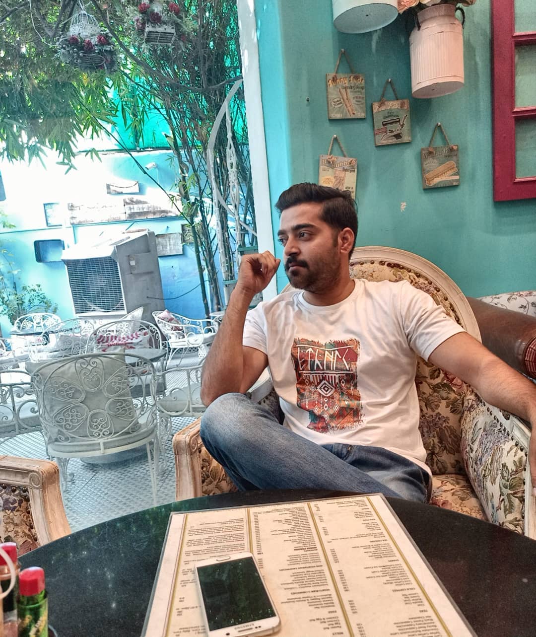 Ethnic Script and Inscriptions White Printed T-Shirt